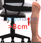 Begin by calculating the Chair Score. Determine the scores for Seat Height, Seat Depth, Armrests, and Backrest using the evaluation diagrams in Tables 2, 3, 4, and 5. These tables indicate the element's score (usually ranging between 1 and 2 or 3 points) and any circumstances that can increase the score. For example, if the seat is too low, causing an angle between the thigh and calf of less than 90º, the Seat Height score is 2. If there is insufficient leg space under the table, add one point, resulting in a Seat Height score of 3. If the seat height is also not adjustable, the final score would be 4.